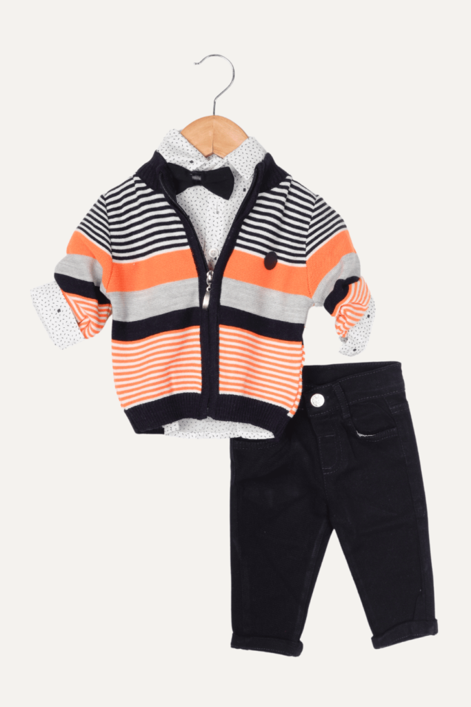 Baskılı Kolej Ceketli Erkek Bebek Üçlü Takım