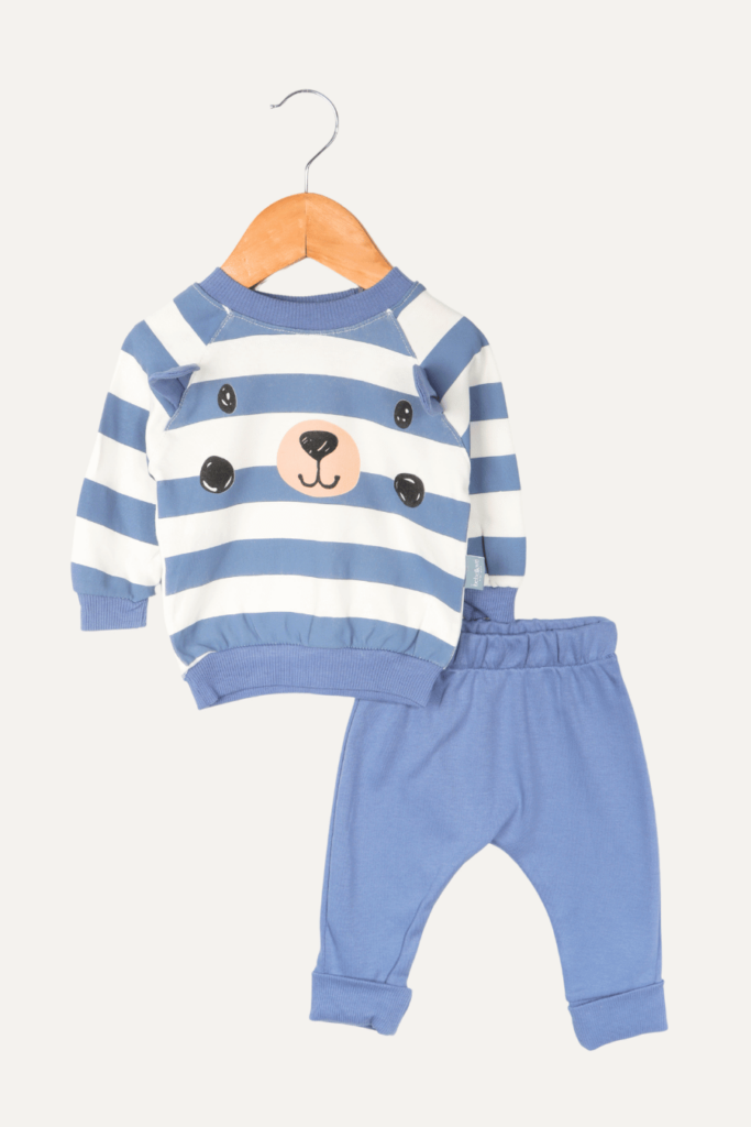 Çizgili Ayıcık Detaylı Erkek Bebek İkili Takım