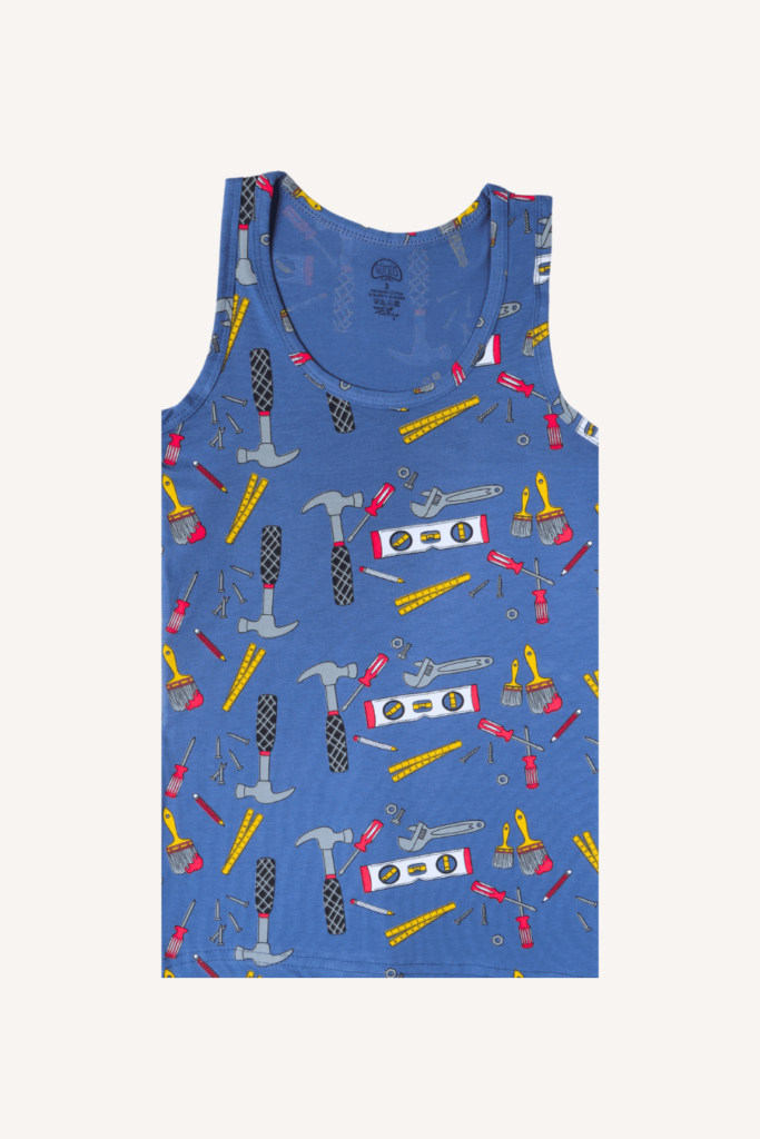Balık Desenli Erkek Çocuk Atlet 9-10 Yaş Mavi