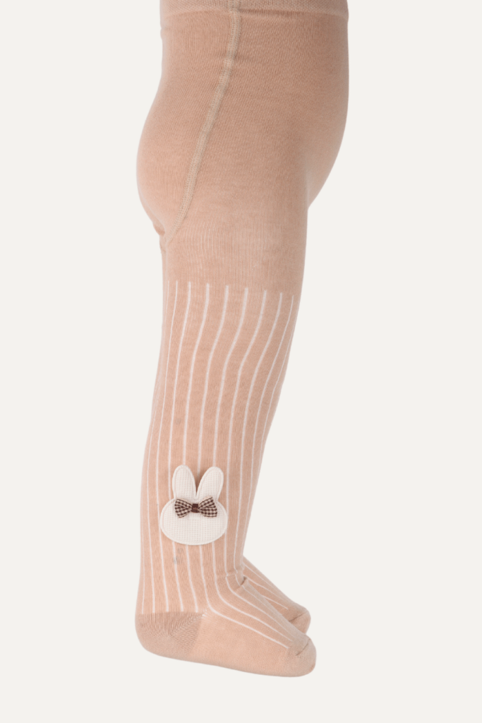 Sevimli Tavşan Kabartmalı Çizgili Kız Çocuk Külotlu Çorap