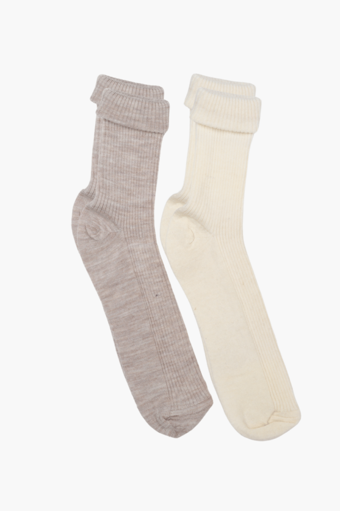 - Paket İçeriği: 1 adet gri çorap, 1 adet krem çorap.