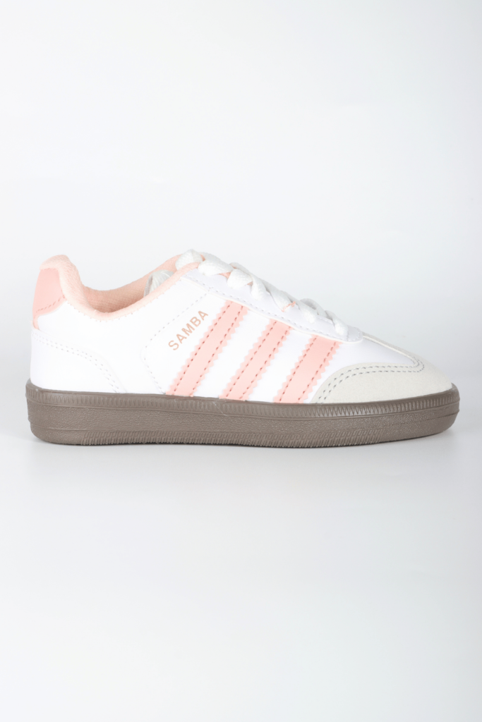 - Bej ve haki renk kombinasyonu, modern ve zarif bir görünüm sunarken, yan kısımdaki “SAMBA” yazısı ve klasik üç çizgi detayı ayakkabının özgün tasarımını tamamlar.