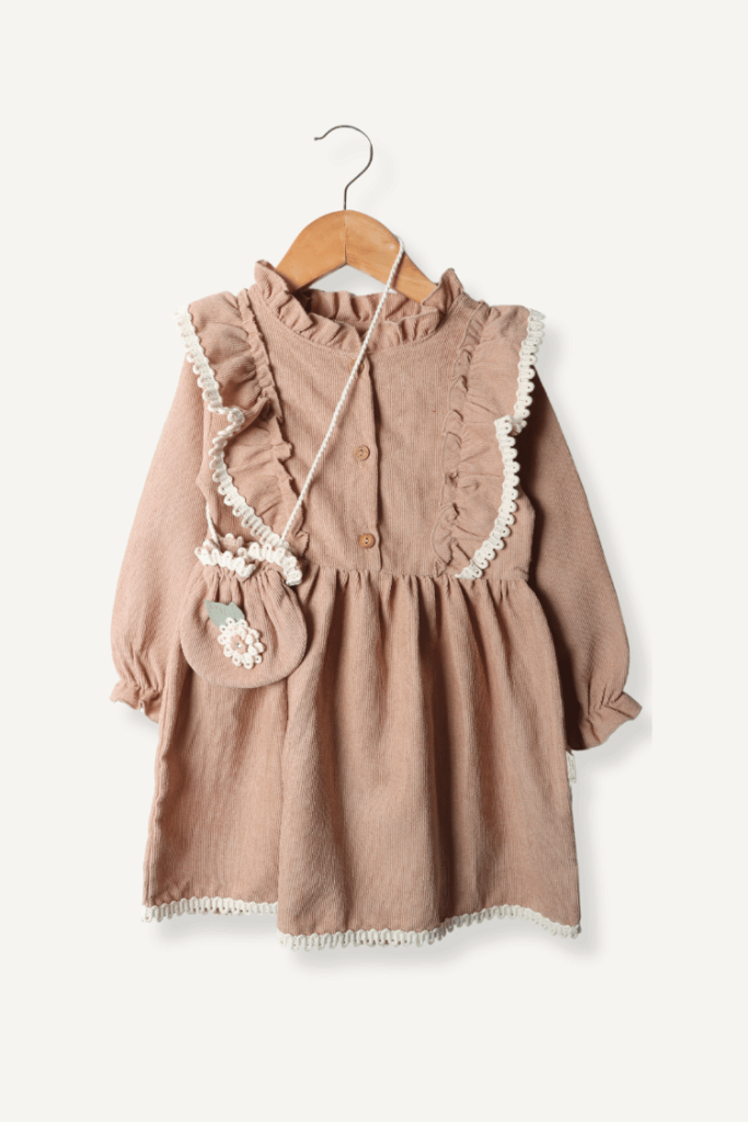 Biminik Çantalı Fırfırlı Kız Çocuk Elbise
