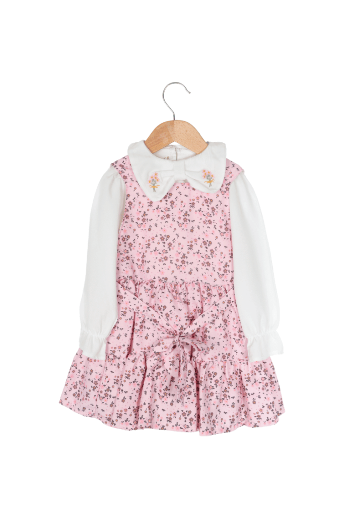 Orijinal fiyat: ₺499,90.₺339,90Şu andaki fiyat: ₺339,90.Kız Çocuk Nakışlı Yaka ve Çiçek Desenli Elbise Gömlek Takımı Pembe