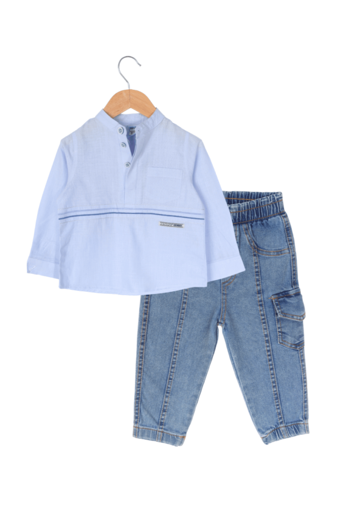 Orijinal fiyat: ₺789,90.₺659,90Şu andaki fiyat: ₺659,90.Erkek Çocuk Yarım Düğmeli Gömlek ve Pantolon İkili Takımı Mavi