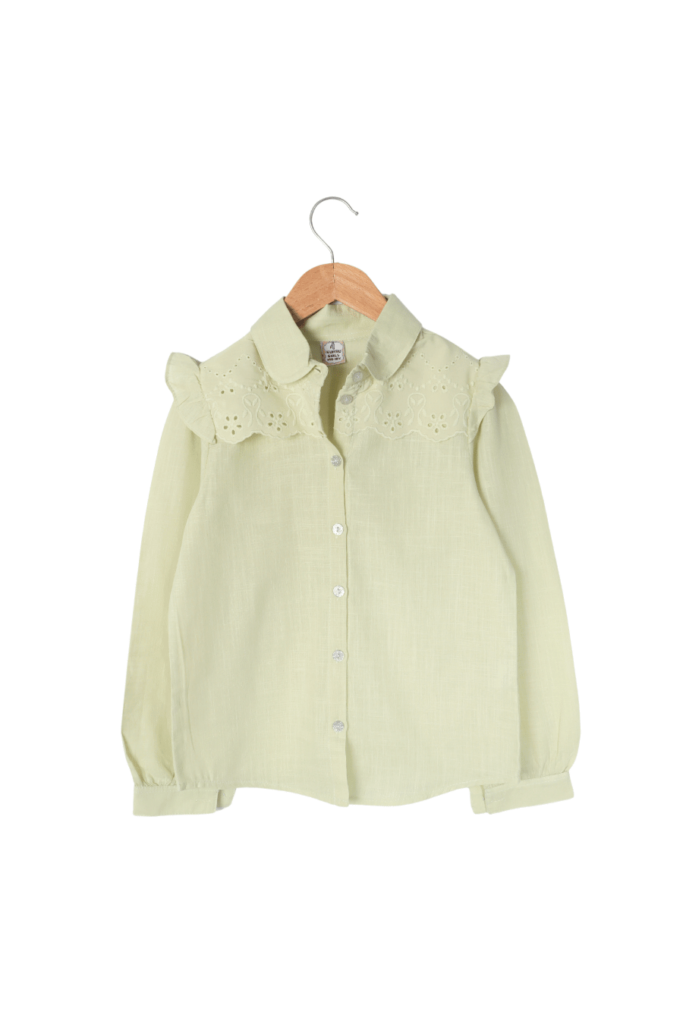 Kız Çocuk Yaka Fırfırlı Kol Nakış Detaylı Gömlek Açık Yeşil