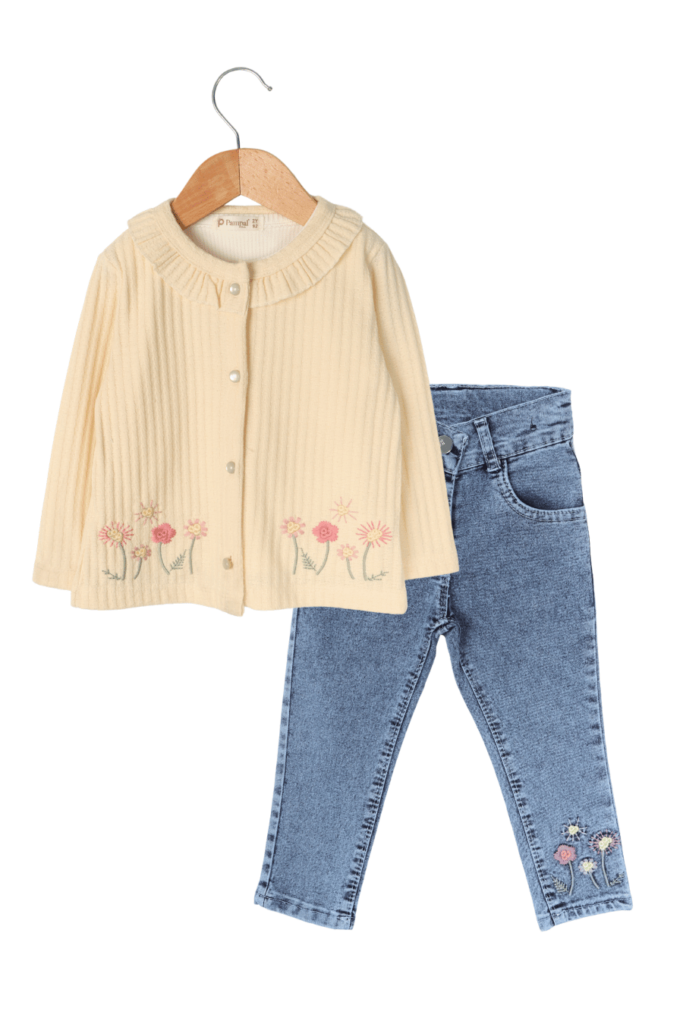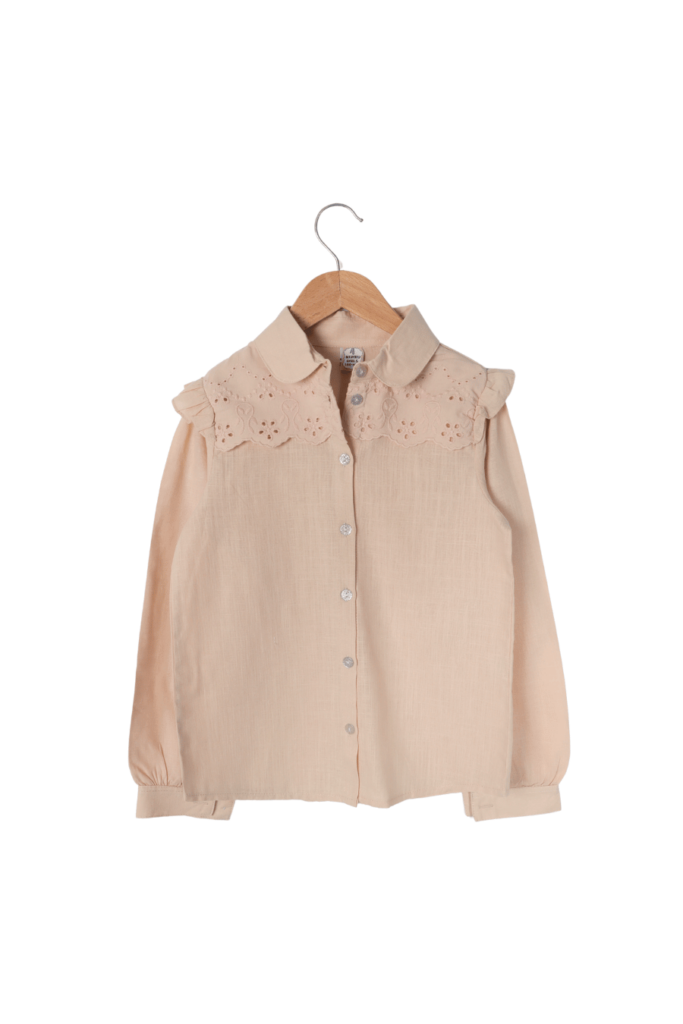 Kız Çocuk Krem Nakış Detaylı Gömlek – Şıklık ve Zarafet Bir Arada!
