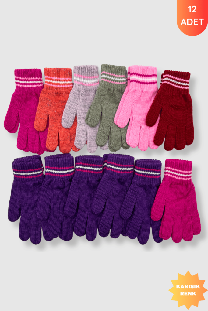 Kız Garson Çizgili Eldiven 12’li