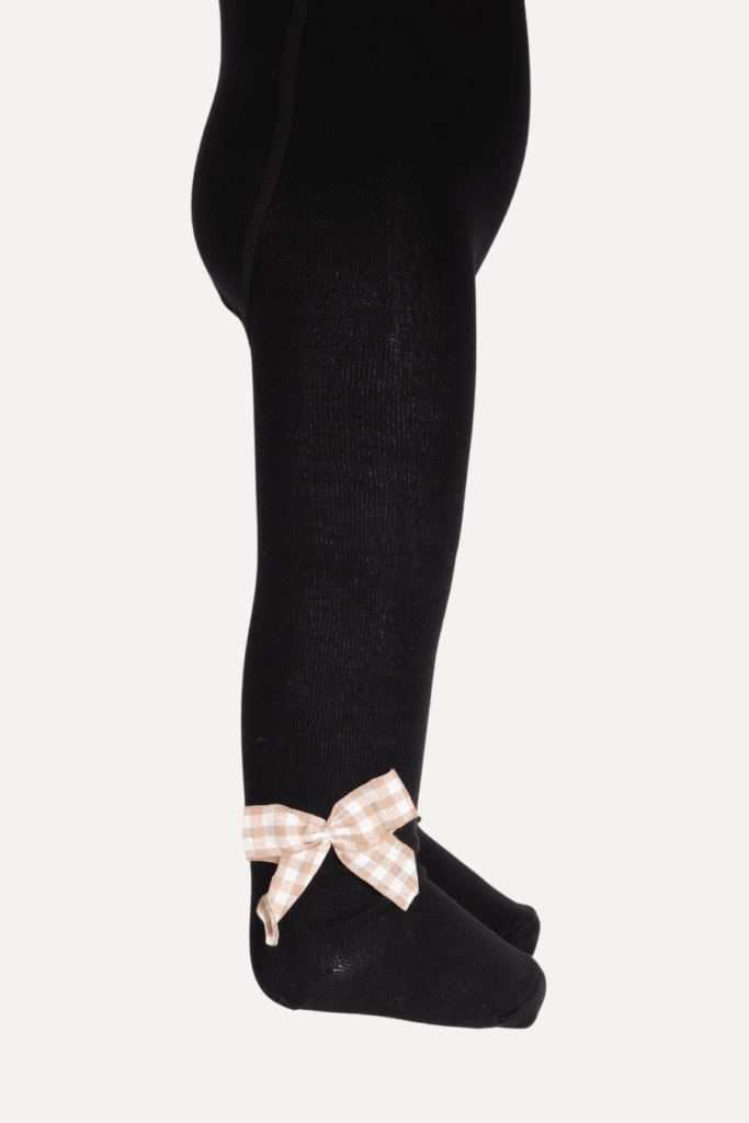 Kız Çocuk Kareli Fiyonklu Külotlu Çorap