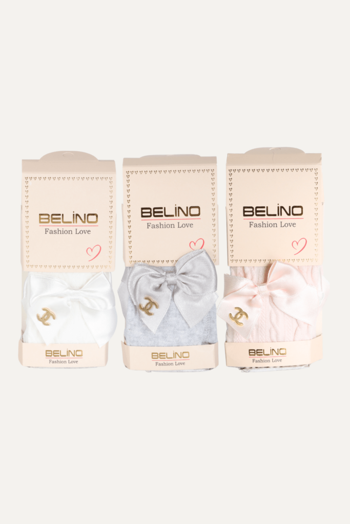 Zarif Tasarımlı Kız Çocuk 3’lü Fiyonklu Külotlu Çorap Seti Karışık Renkli