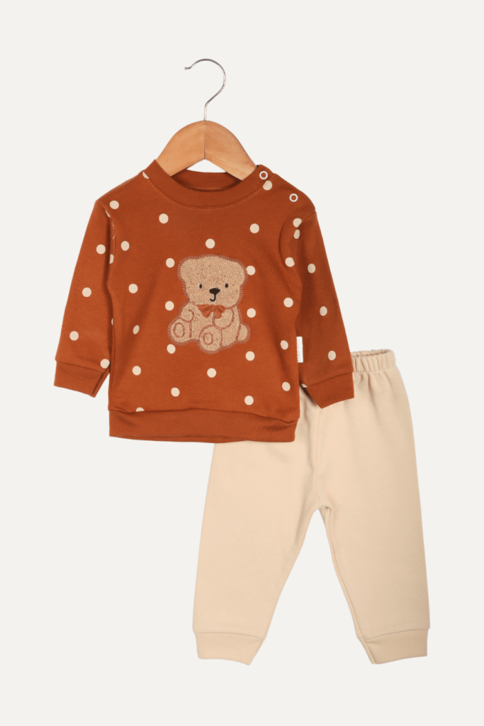 Benekli Ayıcık Nakışlı Erkek Çocuk İkili Takım