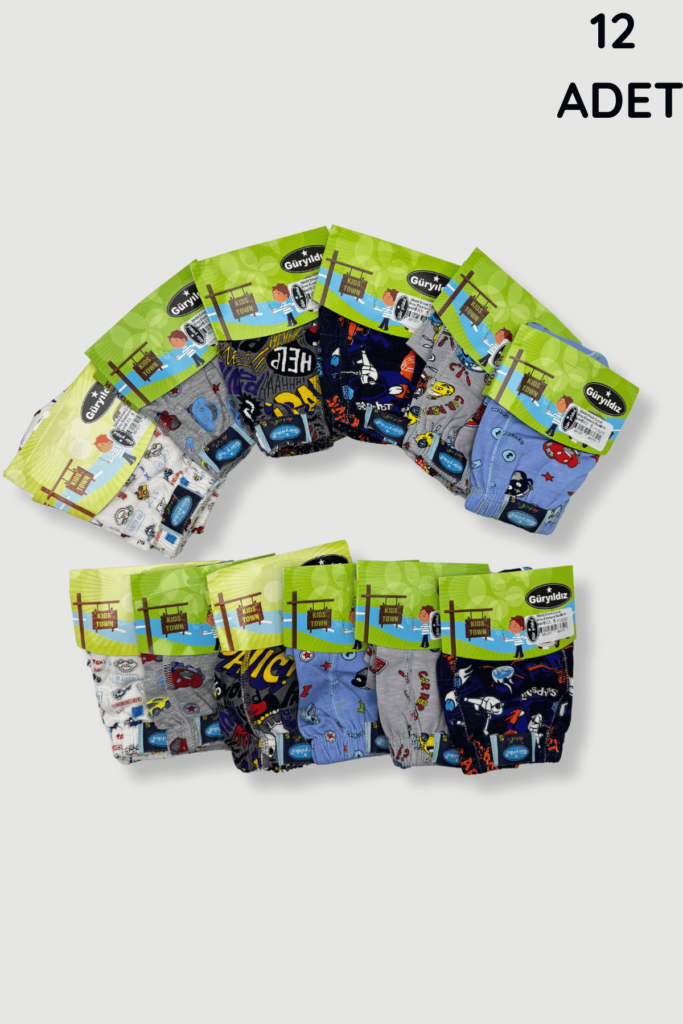 1089 Sedef Çocuk Elastan Boxer 12’li Paket Gri