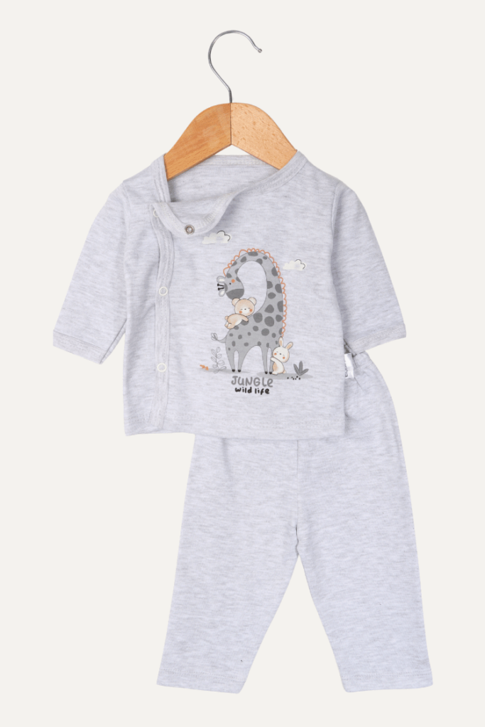 Orijinal fiyat: ₺789,90.₺649,90Şu andaki fiyat: ₺649,90.Zürafa Desenli Erkek Bebek İkili Pijama Takımı Gri
