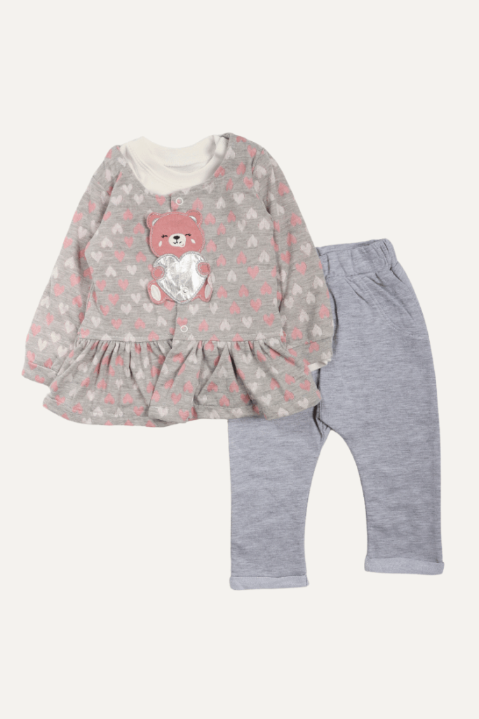 Uyuyan Tavşan Nakışlı Kız Bebek 5’li Yenidoğan Hastane Seti Pembe-Gri