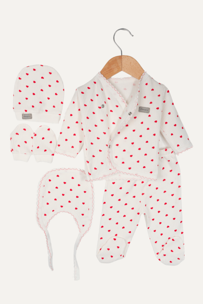 Uyuyan Tavşan Nakışlı Kız Bebek 5’li Yenidoğan Hastane Seti