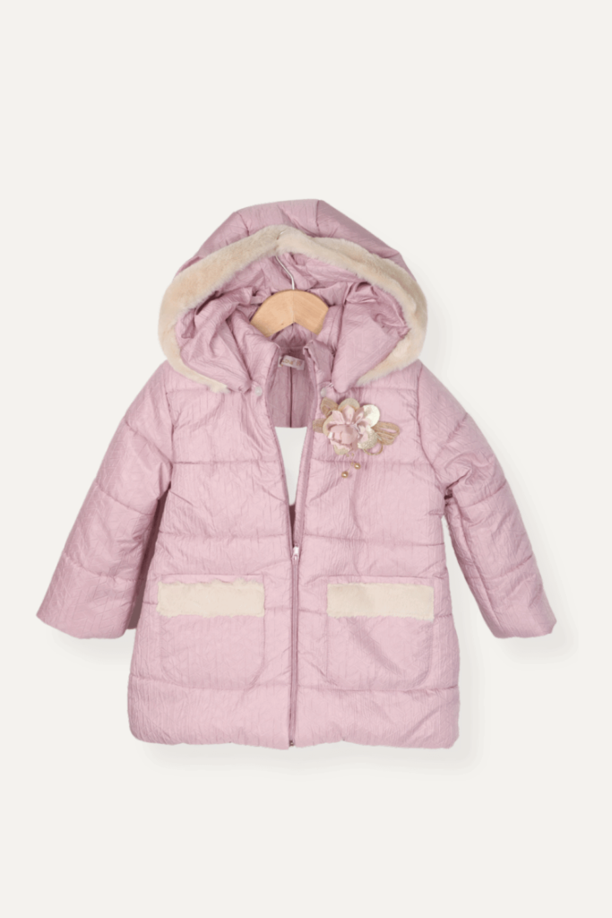 Cep Peluşlu Göfre Desenli Kız Çocuk Mont